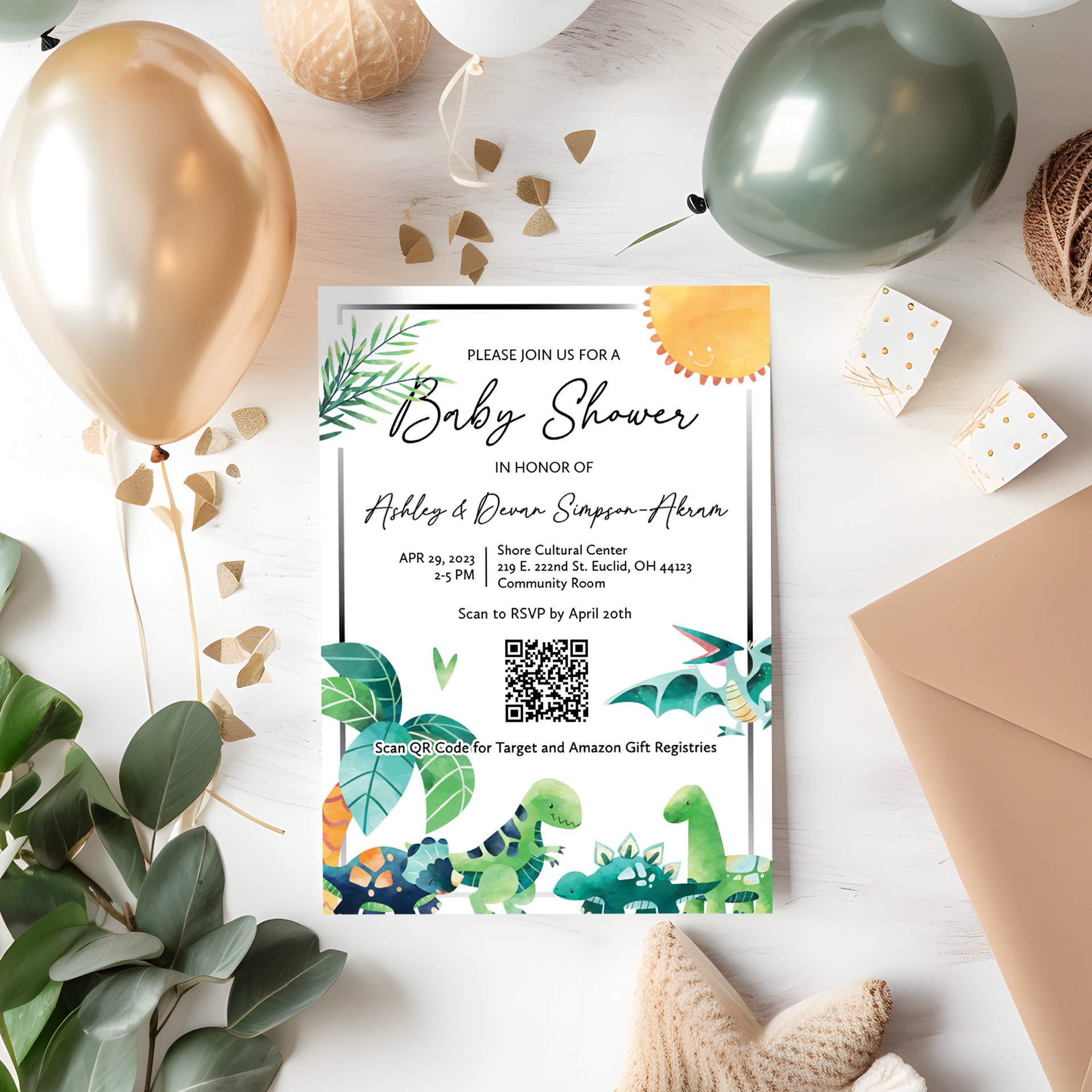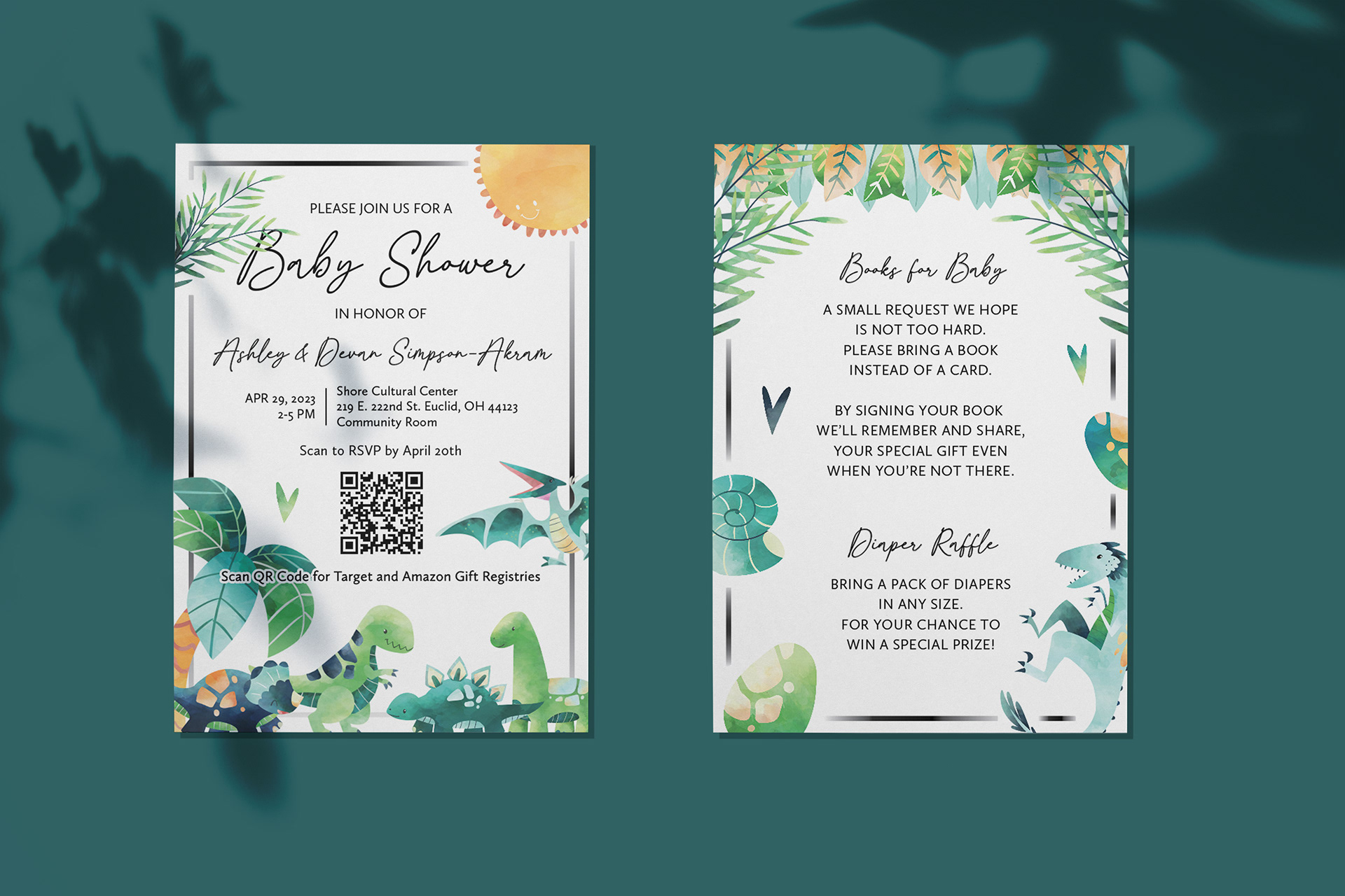 Dinosaur themed baby shower invitations for the expecting mom and dad.